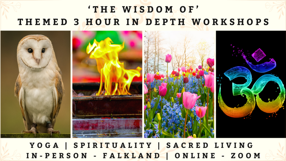The workshops are suitable for adults and take place at the Garden Studio at Kilgour House in Falkland - Fife - Scotland from 10.00 to 13.00. There are 7 in-person spaces available and herbal teas and fruit are included. For some workshops there is the option to join virtually (marked in the list below) and if you would love to join but don't want to practise postures, that is possible too. The first 2 workshops are try-outs and offered at a discounted rate from £30 instead of £40.